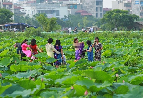 Đôi khi lại có những hành động bẻ hoa sen ngay giữa hồ rất mất mĩ quan. Quả thật, nhu cầu chụp ảnh có thể nảy sinh ở bất cứ ai, bất cứ độ tuổi nào. Không chỉ giới trẻ, các thiếu nữ xuân thì mà cả những phụ nữ lớn tuổi muốn "hồi xuân", ghi lại khoảnh khắc đẹp bên đóa hoa sen tinh khiết cũng là điều rất đỗi bình thường. Tuy nhiên, tâm lý "già rồi nên không ai thèm nhìn", "đông nên không ai để ý" của các bà, các chị đã khiến cho khung cảnh vốn đông đúc, lộn nhộn bỗng trở nên thiếu mỹ quan hơn bao giờ hết.